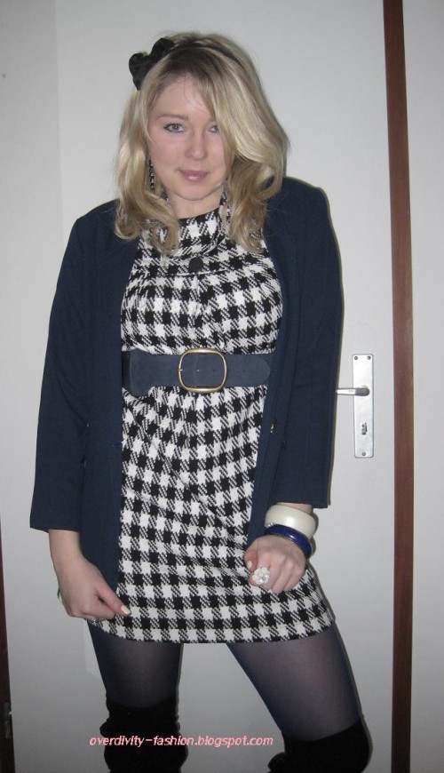 EN: Here comes the first outfit post. I bought the dress recently and combined it with a blazer, which my grandmother sewed for my mom. I wore this outfit during my first shopping tour in this year. I must say that I was quite successful because I’ve found a cute knitted beanie at H&M plus the matching gloves. What else landed in my shopping bag? A jacket, a checkered pants, two blouses, leggings, a sweater and a T-shirt. Moreover, I even found winter boots and a few bracelets. I am looking forward to style and photograph all the beautiful things and show you very soon here on the blog.