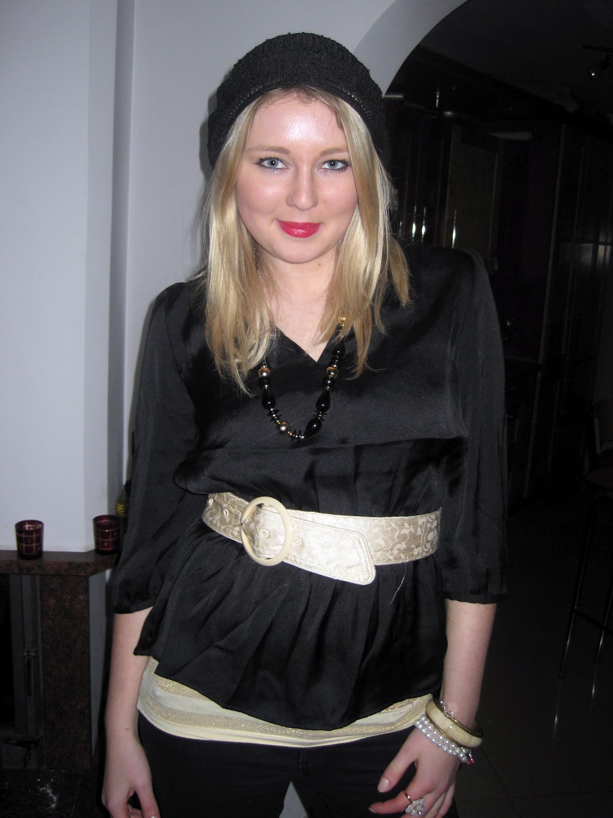 EN: Today is my boyfriends birthday. We spent the day calmly, eating sushi and trying out his new WII Fit Board. My Ouftit was just black and gold. The only bright colour were my red lips. Red Lips are my favourites at the moment. Today I wore the shoes for the first time. They were a present from my boyfriend, though i never mentioned that i like those kind of shoes. I was so happy, when he gave them to me. especially because in de moring i saw a girl in the city, who wore simple black lace leather-shoes, which made me feel jealous half the day (just till i got mine ;P ). I must admit i’m pretty proud. My boy does know what i like and he has a good taste!