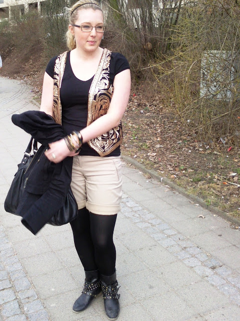 DE: Mein Outfit von letzter Woche. Ein Tag nach der H&M-Ausbeute trug Ich meine neue Weste und Jacke. Es war wundervolles Wetter. Eigentlich sollte man zu Kleidchden und Röcken greifen und sich an hellen Farben orientieren. Doch bei mir ist wohl irgendwas schief gegangen. Ich greife in letzter Zeit zu immer mehr schwarz, umso wärmer es wird.  Gar nicht absichtlich, aber jetzt ist mir das mal aufgefallen und ich werde versuchen in den nächsten Tagen das Wetter zu nutzen um meine Frühlings- und Sommersachen, vor allem die vielen neuen geblümten Teile, zu tragen.