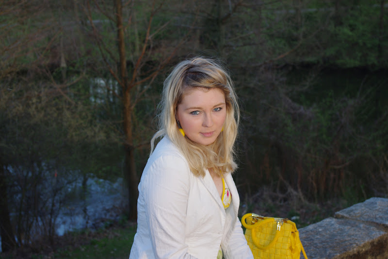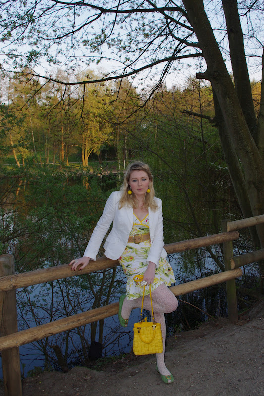 I don`t like yellow colour but in this case I love it! I really like your bag, tights and shoes!