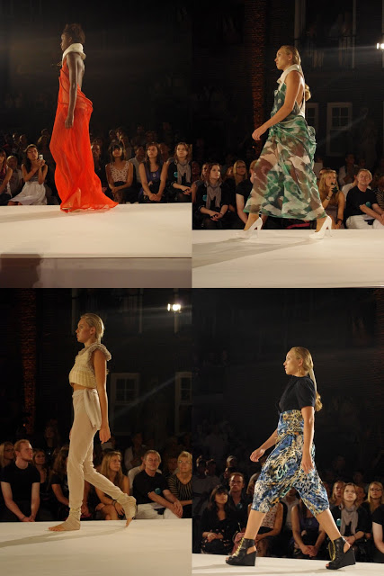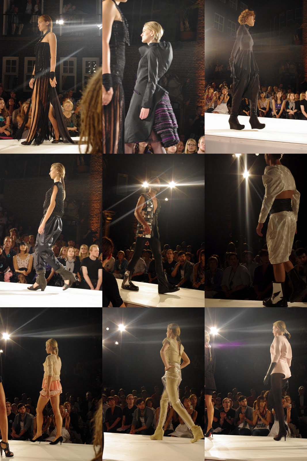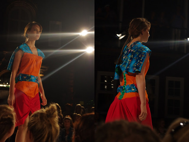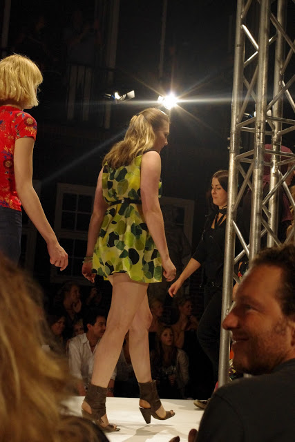 My outfit was shown as fourth, but unfortunately there was a misunderstanding between me and the model’s dresser and so the model, who was wearing my dress didn’t put on the hood (which is the main idea of the dress). But still the whole show was awesome! I was so lucky to see the rehearsal, the first show on Friday and the last show on Saturday. Logically, I made a lot of photos. I picked out the best. Hope you like it,