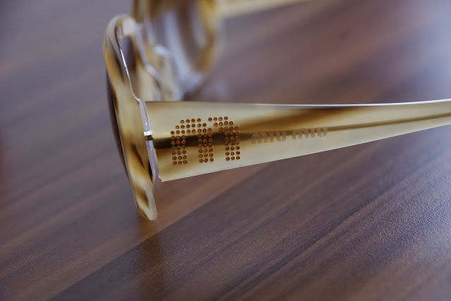 DE: Vor kurzem habe ich bei der Neueröffnung eines Optikers diese tolle Sonnenbrille von Miu Miu zu einem wirklich mikrigen Preis gekauft. Es gab auch ziemlich viele normale Sehstärke-Brillen in dem Laden zu wahren Spottpeisen, aber ich konnte mich einfach nicht entscheiden, welche ich haben wollte und nach einer Stunde rumprobieren entschied ich mcih einfach für diese Sonnenbrille. Schließlich besitze ich bereits über 10 Sehstärke-Brillen. Damit sollte ich wohl auskommen. Erstmal ;)