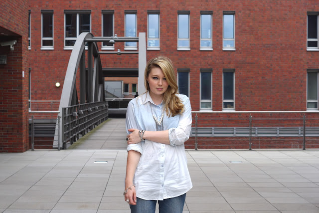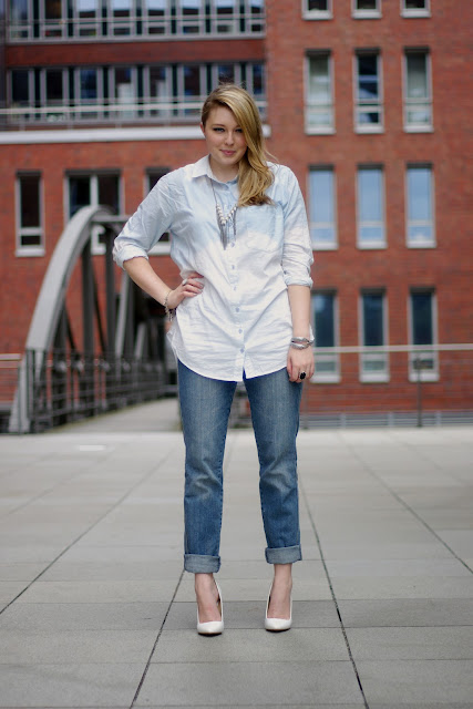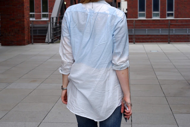 Seit einer Weile, werden unsere Lieblingsjeans und Shirts gebleacht. Ich habe einen Versuch mit einem hellblauen Hemd gewagt, damit der Kontrast nicht ganz so stark ausfällt.