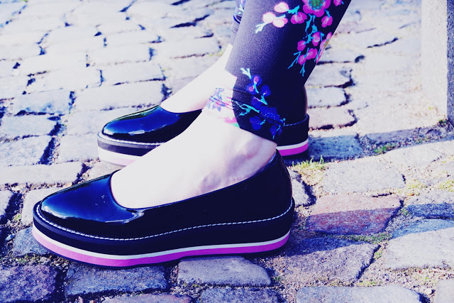 Oh, you look fabulous, love the funky leggings! Your shoes are very awesome and I love them – I only have one pair of flatforms and am looking for closed-toe ones =)