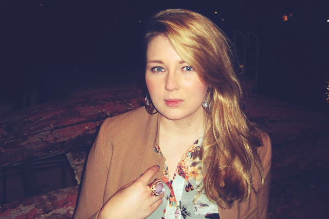 Interesting. Most people choose to take photos of their outfits in the day and you chose to do it at night. The photos turned out lovely though. I love the print of your top and the last photo is adorable. :D