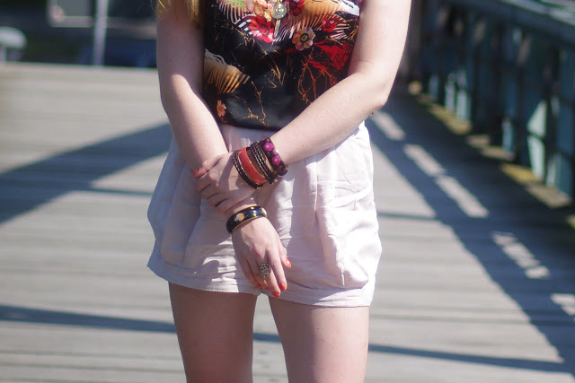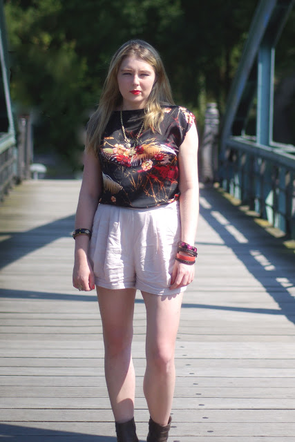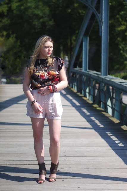Love your outfit! I really like how you paired such bold printed top with a soft paperbag style shorts. Perfect mix of casual and girly.