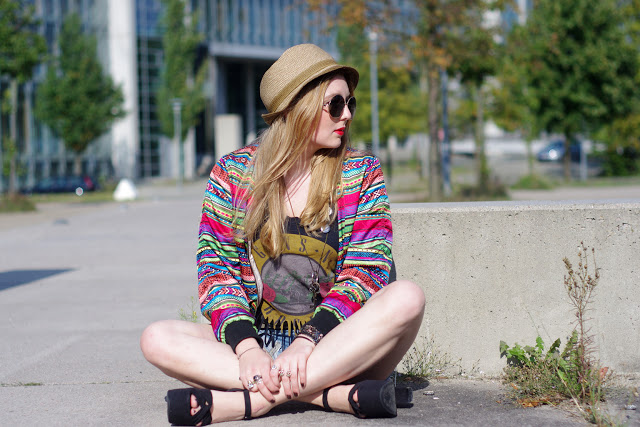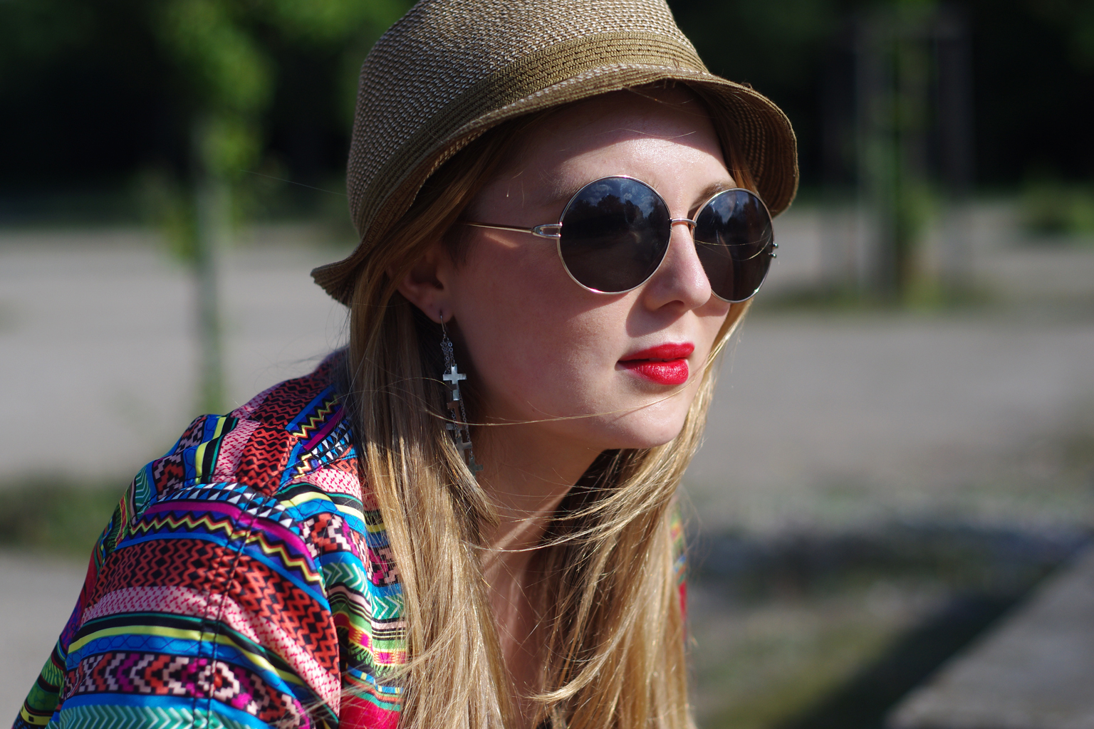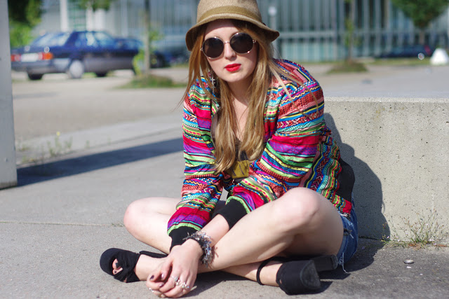 this style rocks! love how you pull off that colorful H&M jacket. adore the round sunnies too!
