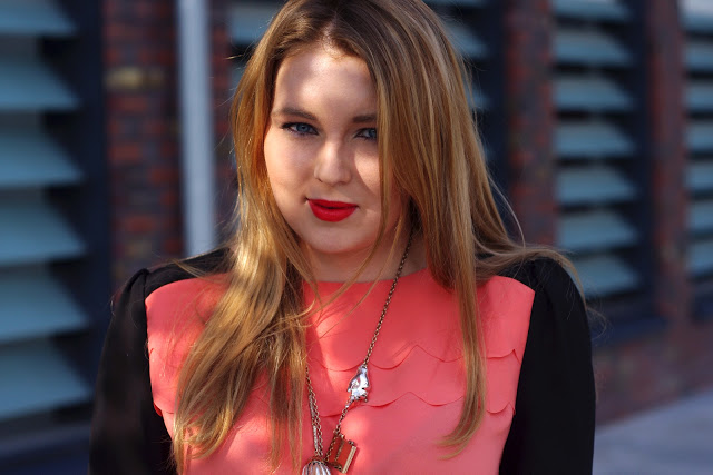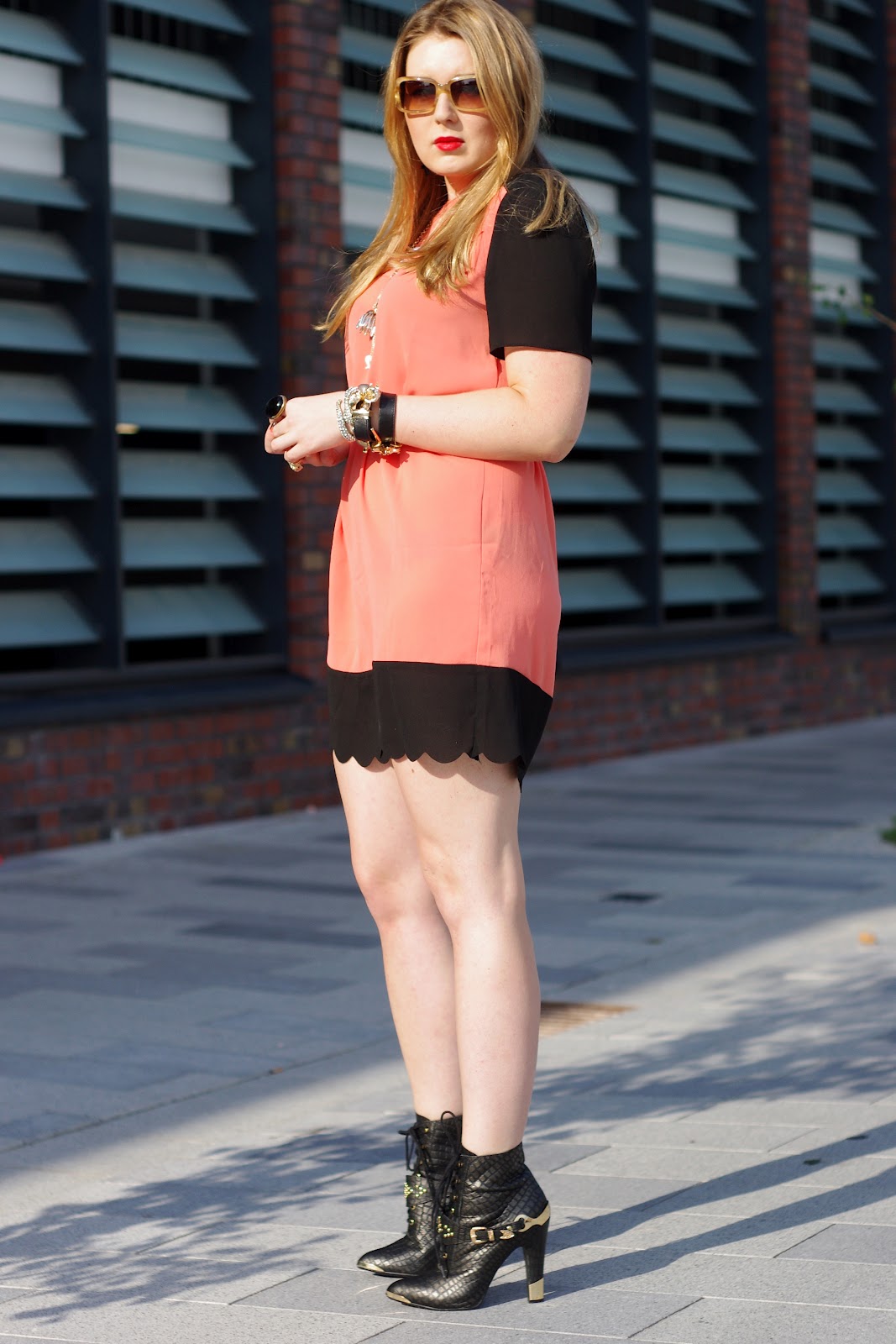 DE: Als ich dieses Kleid aus der Victoria by Victoria Beckham Kollektion (Frühjahr 2012) sah, gefiel mir dar gewellte, schwarze obere Teil des Kleid sofort. Ein Glückspliz, wie ich bin fand ich nur wenige Monate später bei TK Maxx, ein ähnliches Kleid, welches mir auf Grund des gewellten Saumes und der Ärmel noch besser gefiel. Es hing dann aber eine Weile im Schrank, denn ich war mir nicht sicher, ob dieses Kleid overdivity wiederspiegelt. Wie meine Leser sicher wissen, bin ich kein simpler-understatement-kleidungstyp.