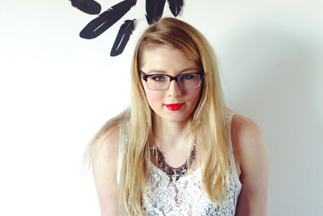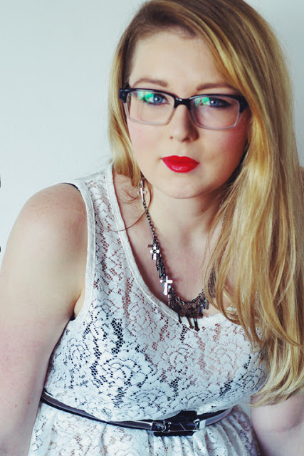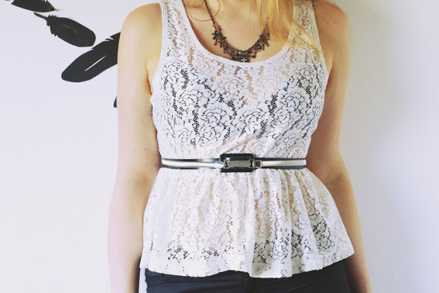 glasses: Firmoo | lace peplum top: Monki | necklace: Asos | earrings: Accessorize | belt: Cubus