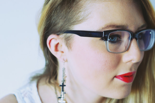 I love that outfit ! The glasses really fit to the red lipstick ;) Cool choise ! :)
