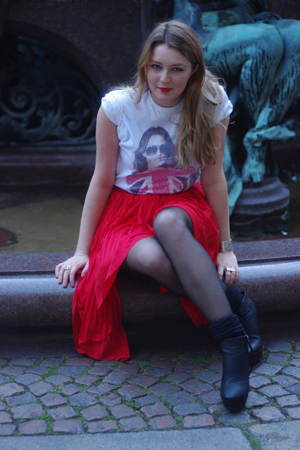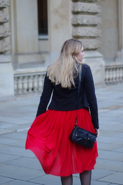 Ostatnie zdjęcie jest wprost genialne ! Uwielbiam Tą spódnicę. Czerwony fantastycznie do Ciebie pasuje :) Poza tym – zakochałam się w torebeczce. Pozdrawiam x