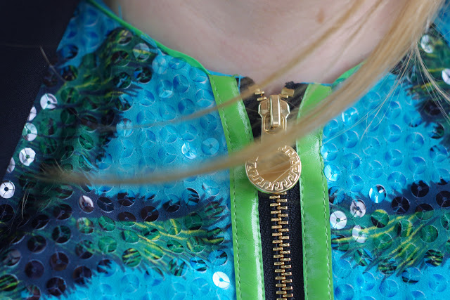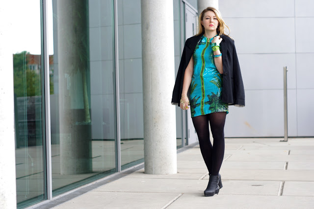 ENG: About this look it just can say, that I am still in love with every single Versace for H&M piece I own, and because this sequined dress hadn’t had his bog appereance moment before, it thought it is finally time to show you. Ok, I admit that you can’t call bold palm prints, sequins, shiny green and golden zippers timeless, but let’s call it an overdivity-versace-for-H&M-everlasting-love. And yes, I am still not done showing you all the pieces from that collection. Some dresses just have to wait for their big moment to come.