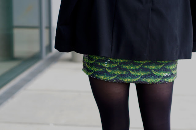 blazer block heels green H&M party sequins stylestanza Versace HM watch