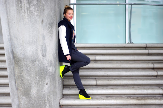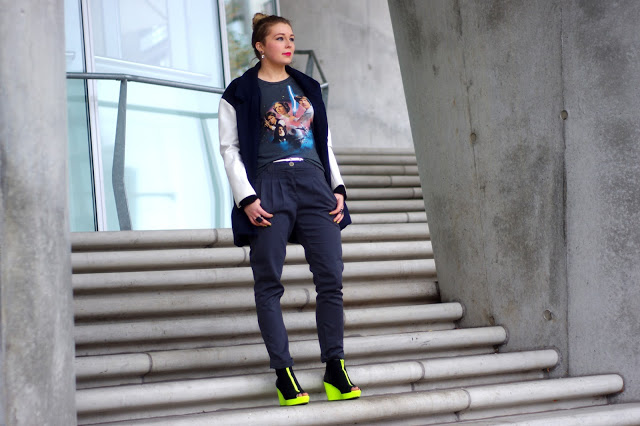 is inspired by the Balenciaga Fall /Winter 2012 collection. I really like it, because of the oversized, square shaped coats, the sweaters with the Star Wars looking prints and big sleeves plus the loose fitted pants. And I am sure you noticed that I am an neon lover. So recreating this Balenciaga Look was easy. Everything need was already hanging in my closet.