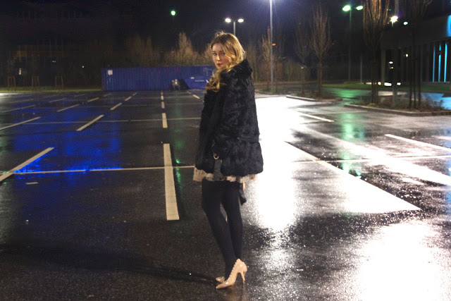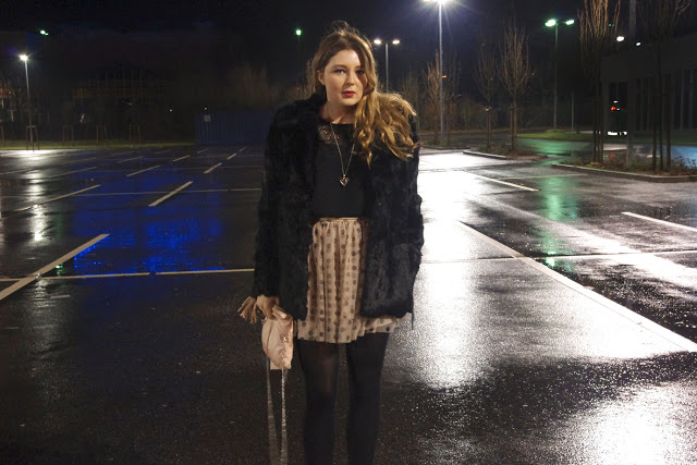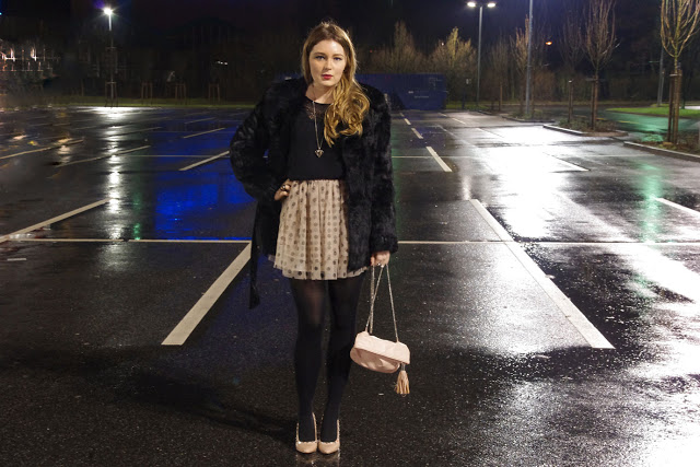 fur: vintage | skirt: Primark | top: Cubus | heels: Steve Madden | clutch: H&M