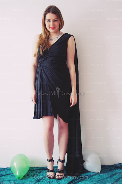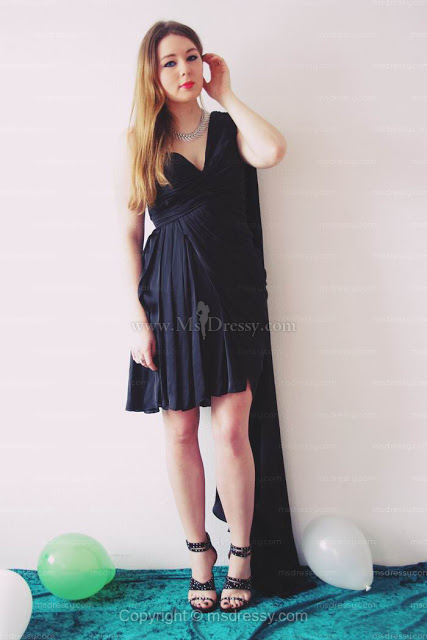 Msdressy has many prom, evening and cocktail dresses. My favorite category are the celebrity dresses. That’s where I found this one-shoulder dress, singer and actress Demi Lovato wore at the American Music Awards. I love the shape of the neckline and the attatched floor-length shawl on one side of the back.