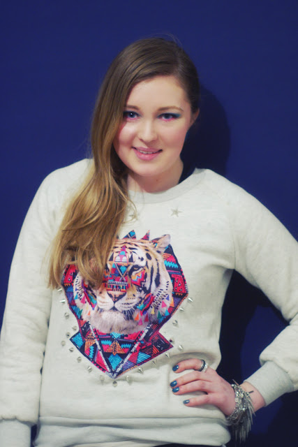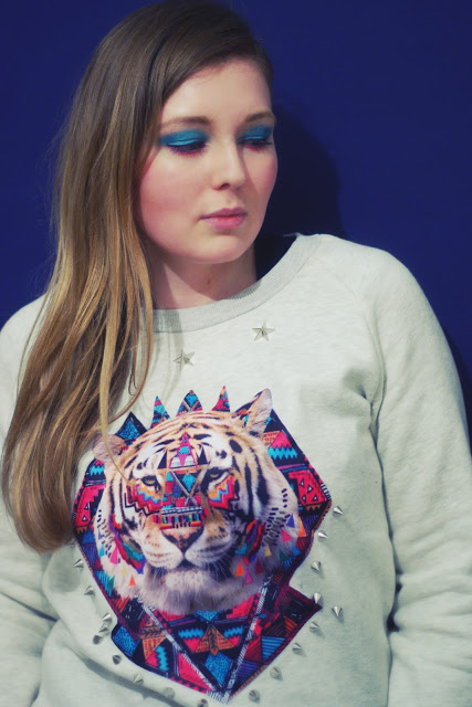 DE: Vor kurzem habe ich zum ersten Mal etwas bei Chicnova bestellt und zwar diesen Pulli mit Tigermotiv und Nieten. Mein absoluter Lieblingspulli, schön weich und warm und die intensiven Farben sind auch genau nach meinem Geschmack. Passend zum Pulli hat eine Freundin mir mal ein käftiges Make-up verpasst. Wie gefällt es euch?