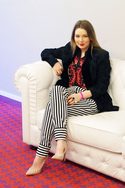 Your pants are amazing. This outfit is so striking! Love the contrast of the two patterns :)