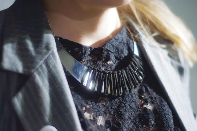 ENG: My third look for Fashion Week Poland was a jumpsuit I sew in my second semester and a vintage blazer jacket from my Mom. I also stole her lace heels which will be a big topic this summer. Vintage feeling hit me and so I tried also a wet-hair look. Outfit and hair were set really quick, but I needed a necklace to complete it and Takko Fashion helped me out. Thanks for that :*