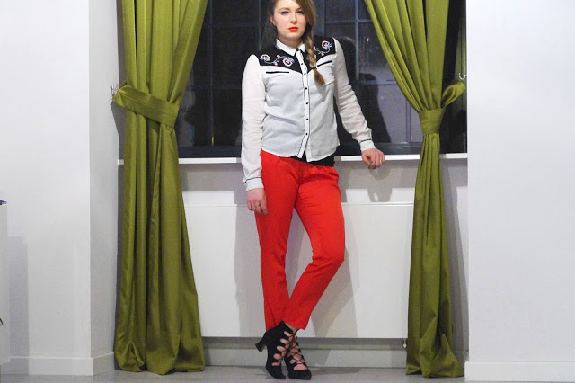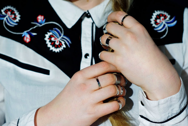 Shirt: CUBUS | pants: H&M | heels: vintage | knuckle/Upper finger rings: H&M