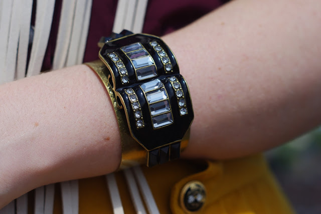 Really like the purple and yellow together! Your fringe necklace is interesting :)