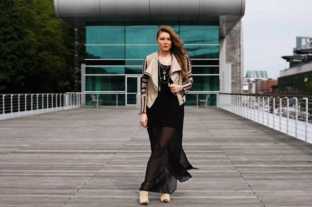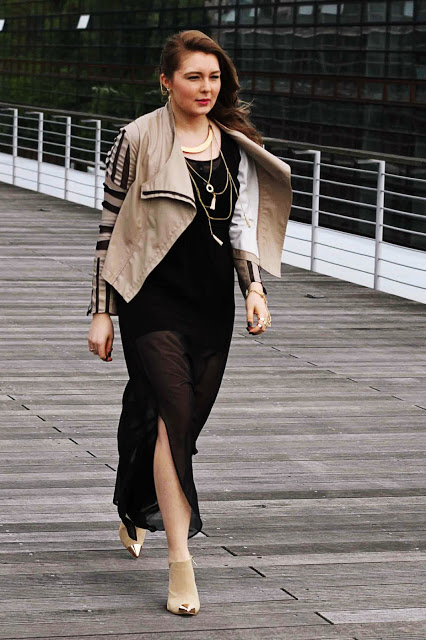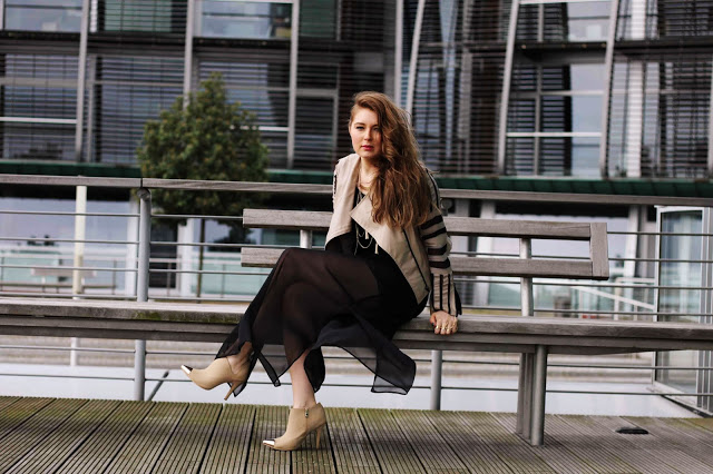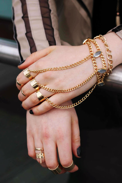dress: Takko | necklace: Promod | braclet with ring: Six | jacket: Nelly | heels: Nelly | upper finger rings: H&M