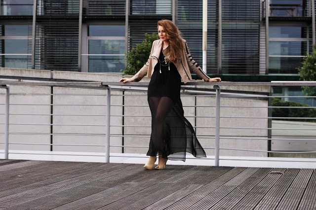 ENG: They say every woman should own a little black dress, because it is perfect for every occasion and you’ll never look overdressed. In case you are not a fan of understatement and overdress is your second name, you can decide for a more flexible version of the LBD. I found this great dress from Takko, which has a maxi layer on top of a short black dress. Combined with golden accessories and a leather jacket you can get this glam and edgy mix look. Those who think this is too much, can go with flats and no accessories and get a casual look for everyday. It is all about the styling.
