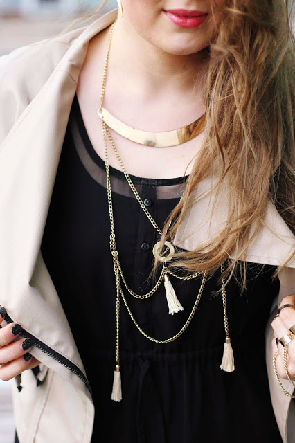 DE: Man sagt, jede Frau sollte ein kleines schwarzes im Kleiderschrank haben, da es zu jeder Gelegenheit passt und man damit nie overdressed wirkt. Für den Fall, dass ihr kein Fan von understement seid und overdressed euer zweiter Name sein könnte, solltet ihr euch eine flexible Version eines kleinen schwarzen zulegen. Ich habe dieses Kleid mit zwei Lagen bei Takko gefunden. Kombiniert man es mit goldenem Schmuck, Heels und einer Lederjacke, erhält man einen ausgefallen mix aus glam und rockig. Für diejenigen, die es an manchen Tagen auch ruhiger bevorzugen: Einfach Flache Schuhe anziehen, Schmuck weglassen und schon hat man einen gemütlichen Look für jeden Tag. Es kommt eben auf das Styling an.