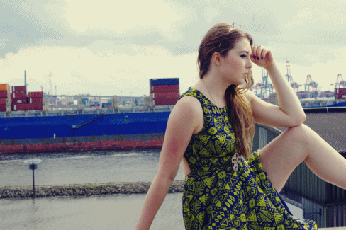 Ich finde Rückenausschnitte total schön, auch bei diesem Kleid (das übrigens ein tolles Muster hat), aber ich zieh sowas nie an, wo ich keinen vernünftigen BH drunterziehen kann. Mit wenig Oberweite sieht das nämlich echt nicht gut aus. Das finde ich voll schade :(