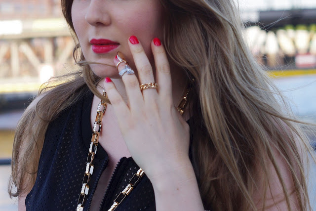 black, red lips, trend, summer 2013, blogger, streetstyle, lookbook, outfit, eagle, chain, gold, silver