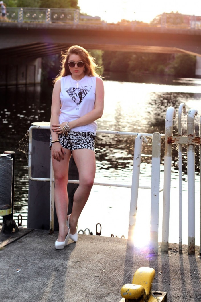 top: Das Goldene Taxi | shorts: H&M | Heels: H&M | Bracelet: Six | sunnies: Monki | cross: Cubus