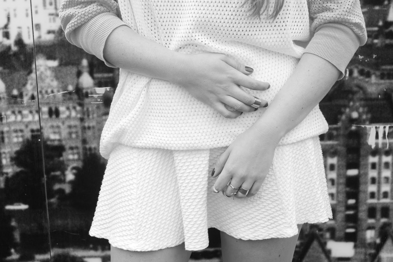 DE: Obwohl mein Look noch sehr sommerlich ist, steckt bereits ein Herbst Trend dahinter: Pulli über Rock. Céline, Christopher Kane und Sportmax haben auf dem Laufsteg vorgemacht wie es geht: Kuscheliger Oversize Pulli über Rock in A-Linie und fertig ist der Trend. Im Herbst natürlich mit Strumpfhose und Stiefeln.