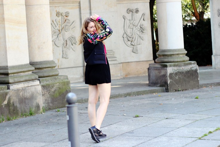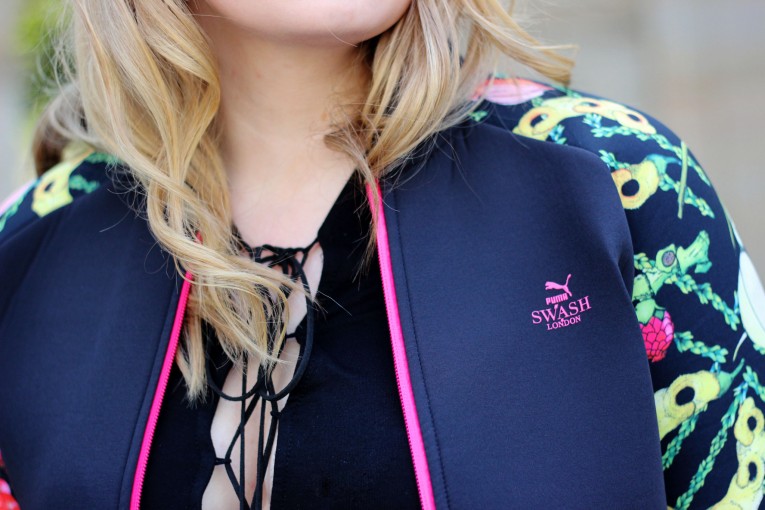 EN: PUMA and the fashion label SWASH have created an autumn / winter collection together Sarah Swash and Toshio Yamanaka are the creative the designers behind the Label SWASH . Their designs are characterized by visionary intricate illustrations with designs from the Botany and historical drawings of animals. The playful elements printed so on each garment create colorful new worlds. Exactly what I like! I have picked a jacket made of neoprene with pink zippers and patterned sleeves from the collection. There is also a matching shorts (but, unfortunately, my size is already sold out). Too bad, because I’m a big fan of such looks (as in the last post). In addition to the colorful design, the designer duo designed clothes with and black and white animal print for PUMA. In this case, animal print doesn’t not mean leopard or other animal fur pattern, but many illustrations of animals that create an overall pattern (see here)What do you say about the collection and how do you like my jacket?