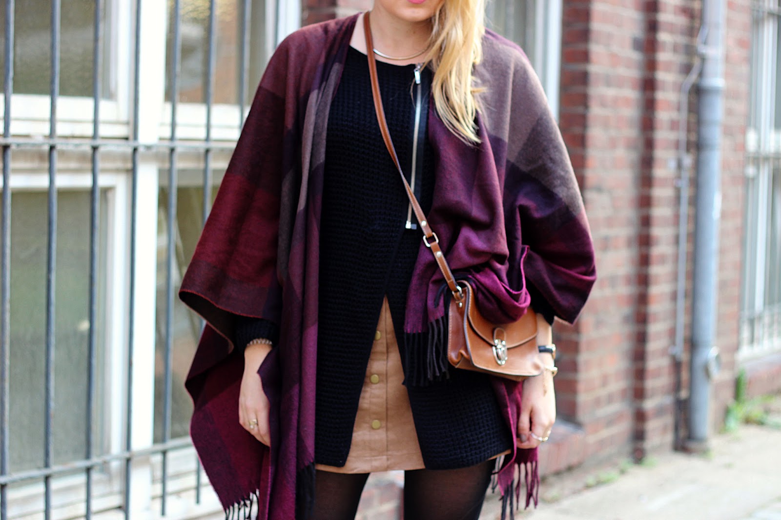 cape: Lidl | sweater: Lidl | skirt: H&M | bag: H&M | shoes: H&M | necklace: Madeleine Issing