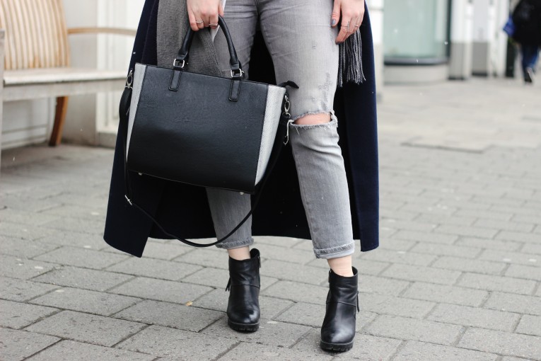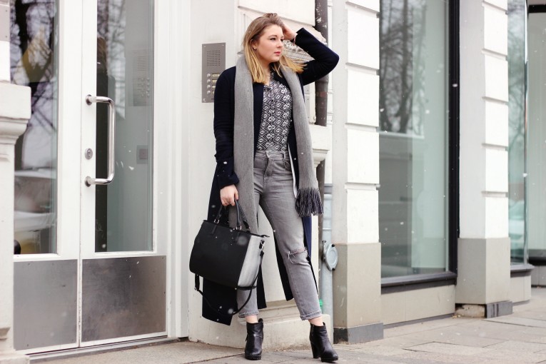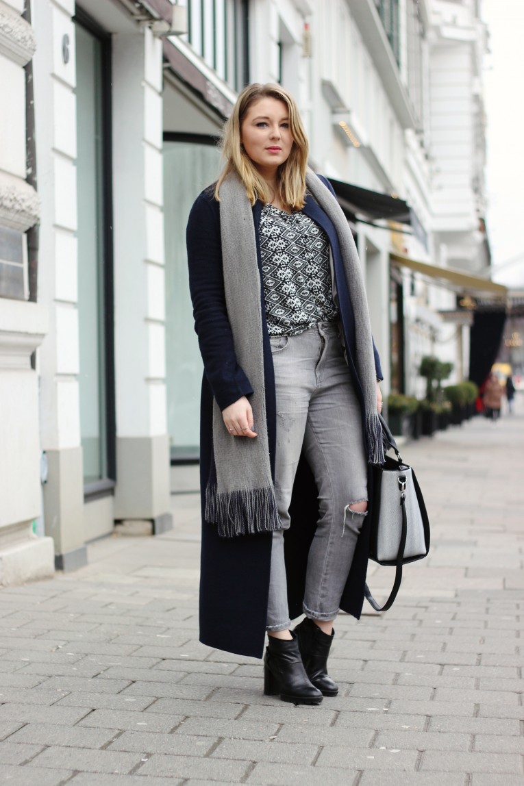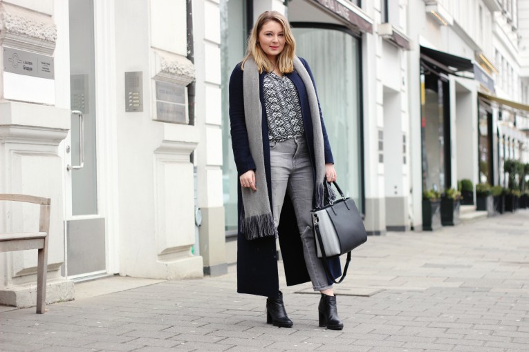 alster brand business bag hamburg long coat modeblogger print bluse ripped jeans saint tropez stiefelleten xl mantel