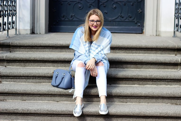 babyblue blue frames brille firmoo hellblau lila lippenstift peperosa ripped jeans Serenity silver shoes tomtailor tuch