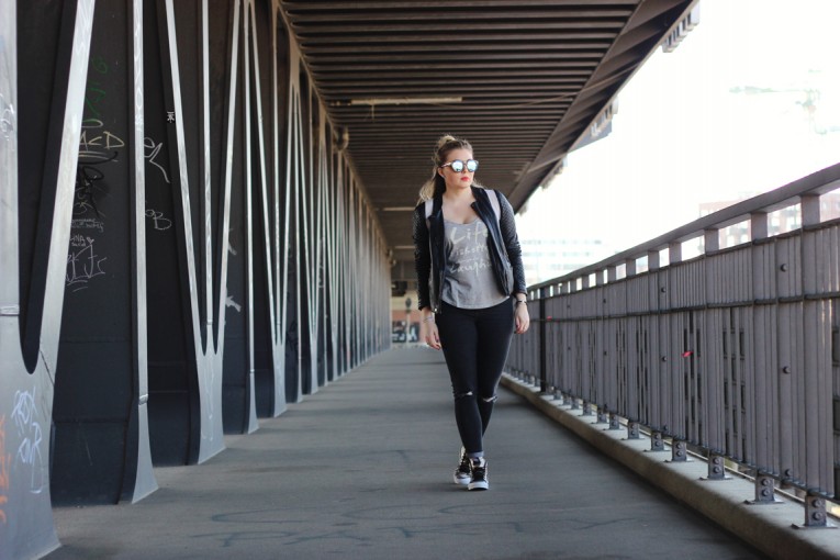 shirts: Buddha to Buddha* | jacket: Steve Madden | jeans: Bershka | backpack: Six | bracelets: Buddha to Buddha* | sneakers: Vans via Foot Locker* | earrings: Buddha to Buddha* | sunnies: Le Specs