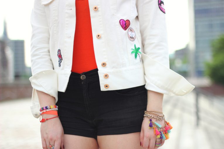 OVERDIVITY - Jacke mit Herz, Flamingo und Palmenaufnäher OVERDIVITY Sommer Outfit 2016 OVERDIVITY - Fransenohrringe OVERDIVITY - Looney Tunes Codello Seidentuch OVERDIVITY - Weiße Jacke mit PatchesOVERDIVITY Codello Seidentuch mit Looney Tunes und Mohito BagOVERDIVITY Bügelbilder Jacke OVERDIVITY Bershka DIY Crop JackeOVERDIVITY Shorts und Denim Jacke OVERDIVITY Mohito Bucketbag