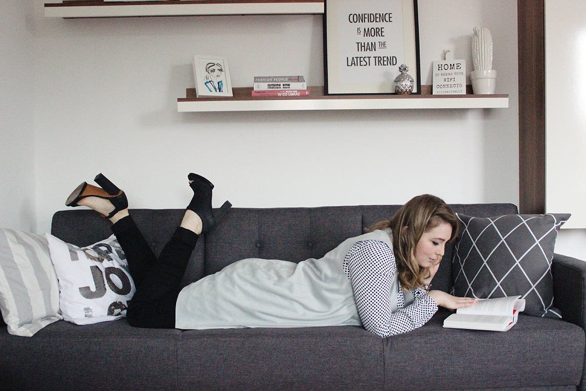 follow me around grau meliert interior livving modeblogger pariser charme schlafcouch schlafsofa sofa tchibo weiße tischlampe weochenwelt
