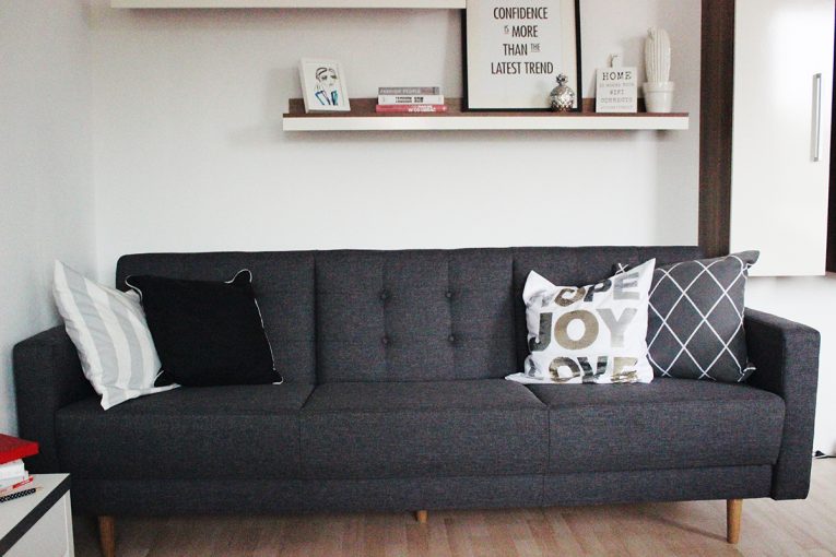 DE: Home Sweet Home. In diesem Beitrag habe ich euch bereits von den tollen Wohnartikeln von Tchibo.de vorgeschwärmt. Nun zeige ich euch nicht nur die coole, weiße Tischlampe, sondern noch ein weiteres neues Stück, welches seit kurzem mein Wohnzimmer verschönert: ein graues Schlafsofa. Dieses findet ihr ab heute im Onlineshop.