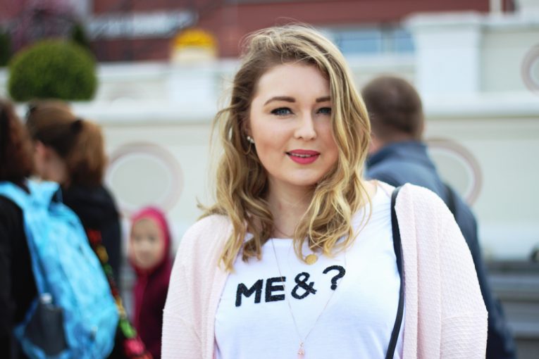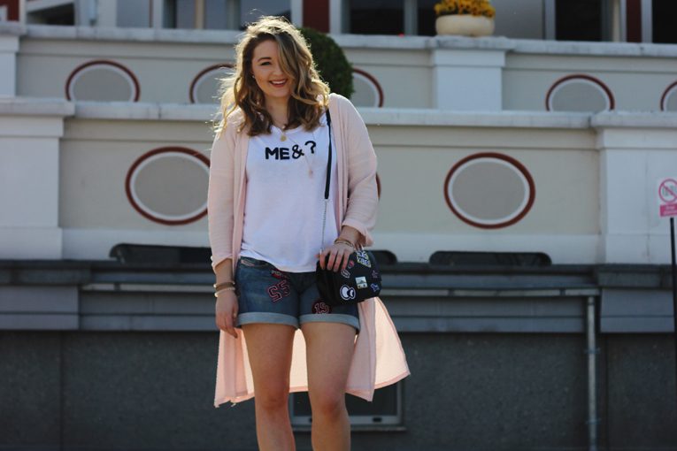 OVERDIVITY Me & ? Shirt OVERDIVITY StylebloggerOVERDIVITY Pink K Swiss sneakers OVERDIVITY polish bloggerOVERDIVITY No bad vibes, denim short mit Aufnähern OVERDIVITY Patchbag Zara overdivity Sopot