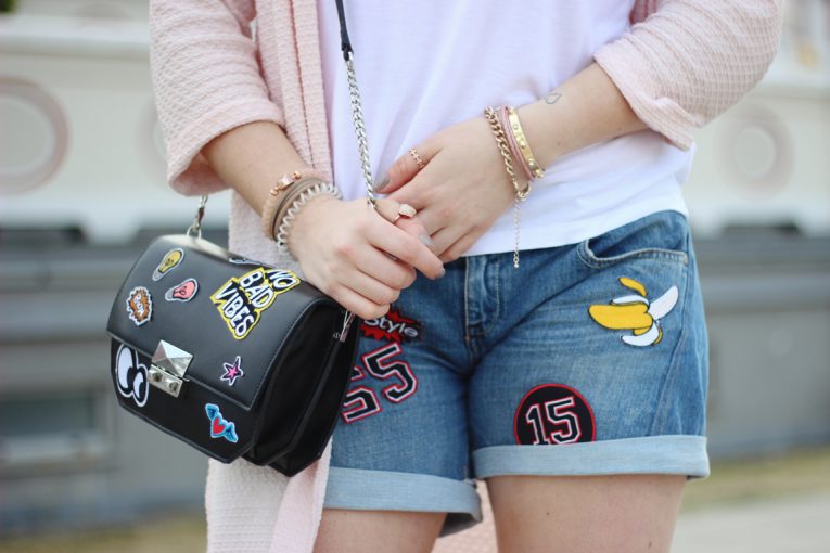 bügelbilder comic trend denim shorts diy emoji tasche hamburg k swiss modeblogger pastell schuhe patches pink sneakers sopot trend zara patch bag