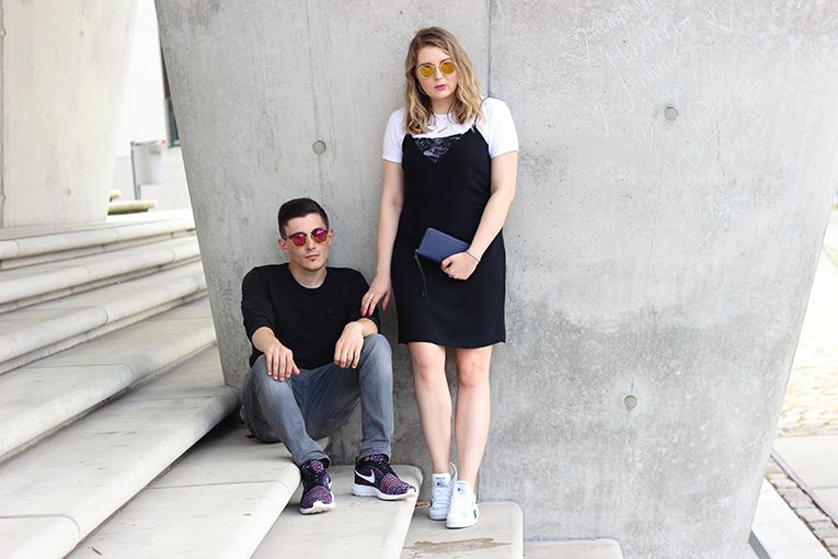 blogger couple fashionblog footlocker eu footlooker kleid über shirt modeblogger nike patchjacke reebok sneakers spaghettikleid strapdress streetstyle thisisclassic