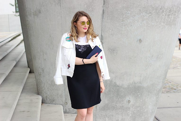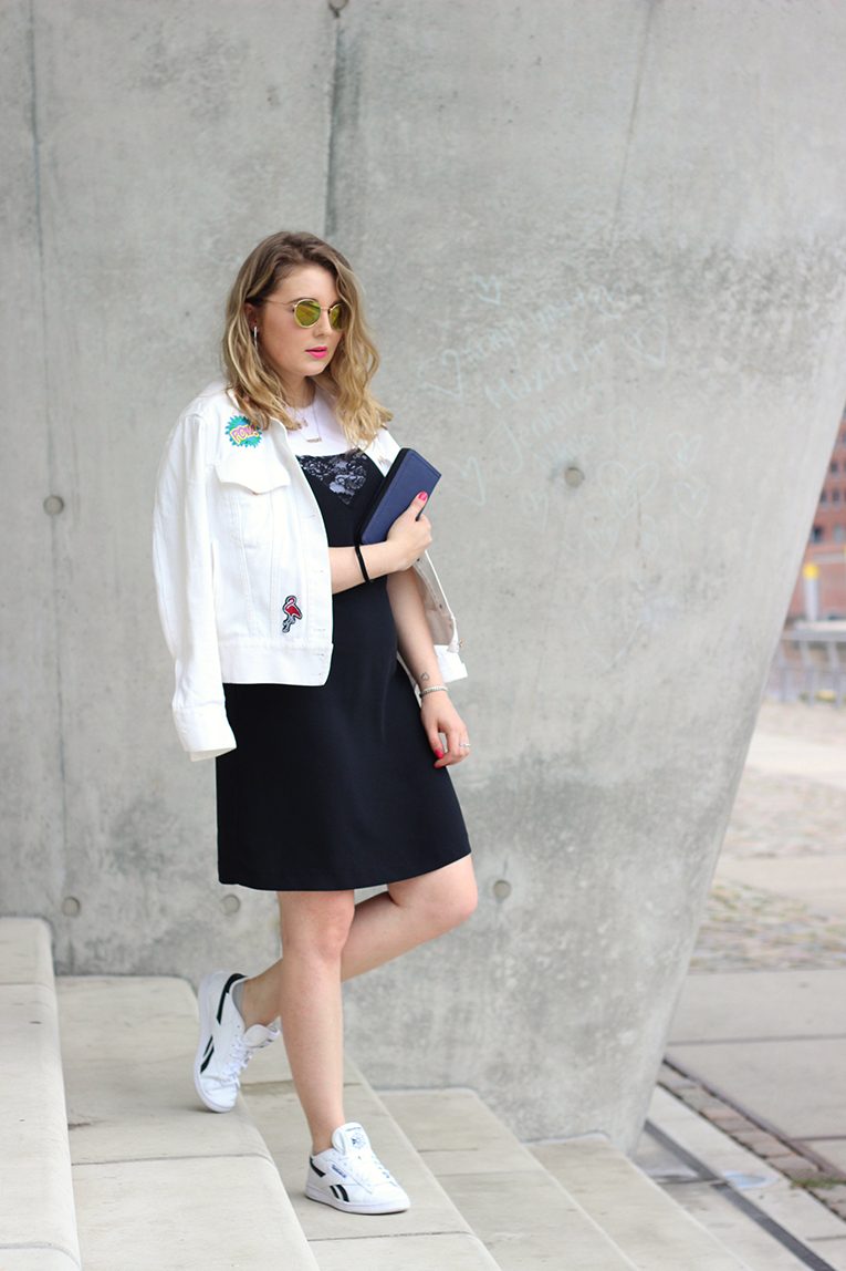 jacket: H&M & DIY |dress: Reserved | shirt: Initielle* | sneakers: Reebok via Footlocker* | necklace: Bijou Brigitte* |