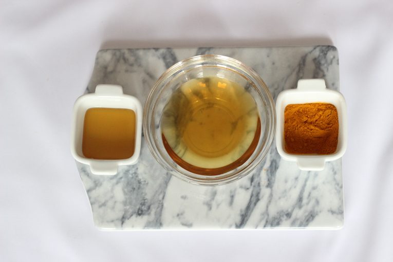 Entzündungshemmende Maske:  Die im Kamillentee und Kurkuma enthaltenen Wirkstoffe wirken entzündungshemmend, während, der Honig die Haut beruhigt. Für diese Maske zuerst einen Teebeutel mit ein wenig kochendem Wasser aufgießen, 10-15 Minuten ziehen lassen uns anschließend mit dem Honig und Kurkuma mischen.