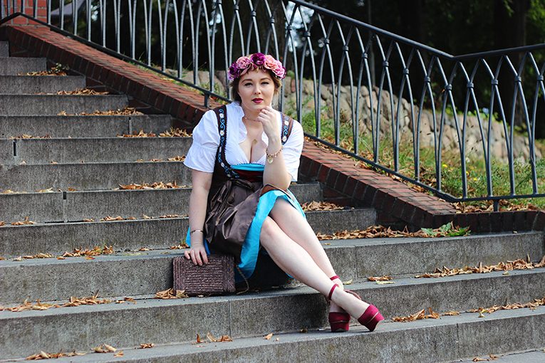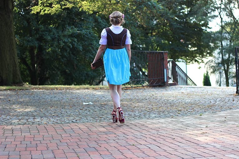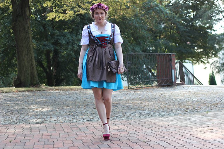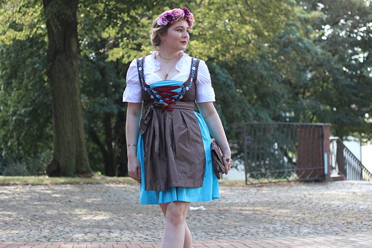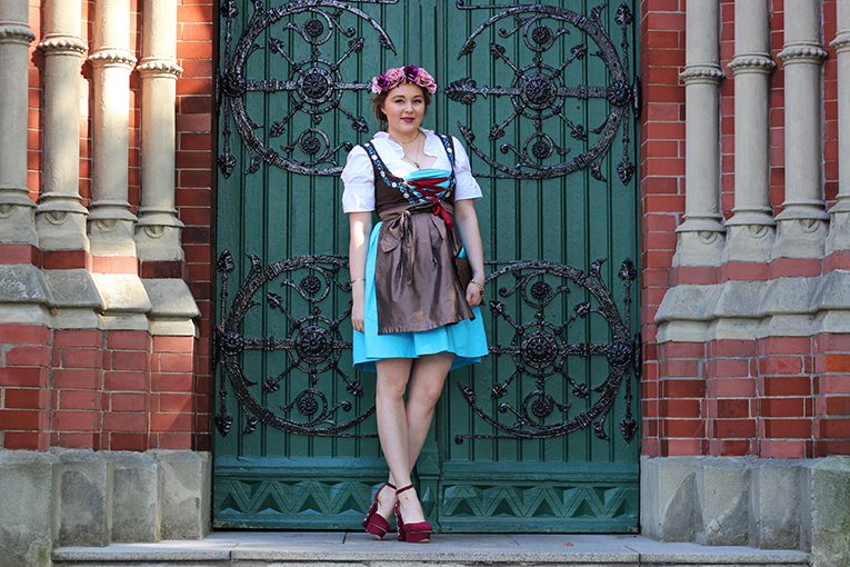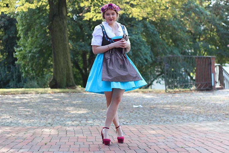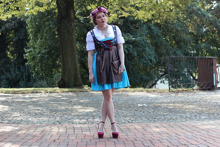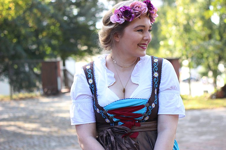 Im letzten Beitrag habe ich euch bereits ein traditionelles Dirndl gezeigt und nun möchte ich euch eine etwas modernen und farbenfrohe Variante zeigen. Im Gegensatz zum letzten Dirndl-Outfit habe ich mich bei diesem nicht zurückgehalten mit auffälligen Accessoires.