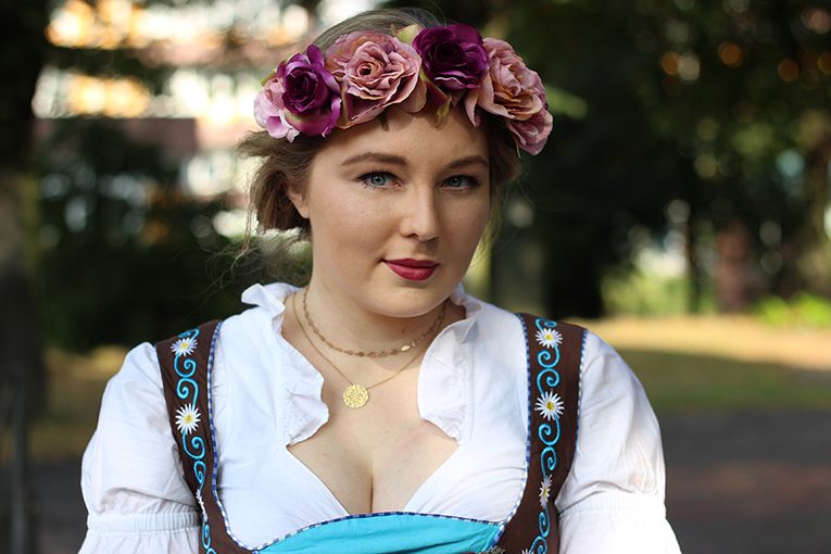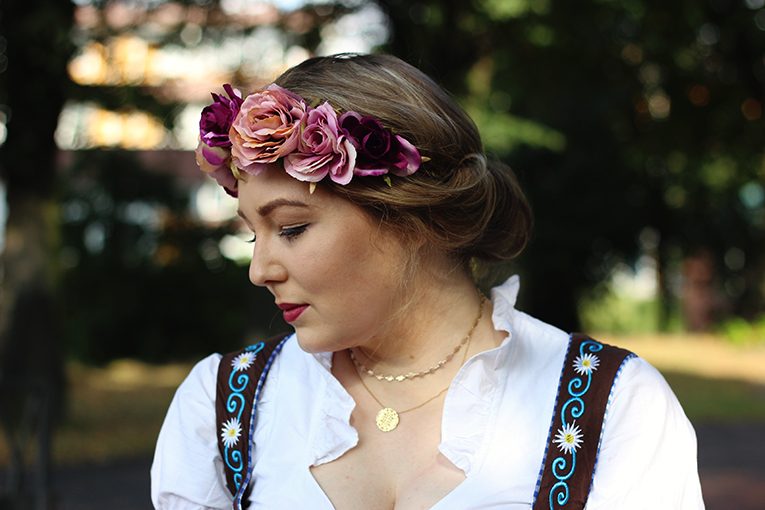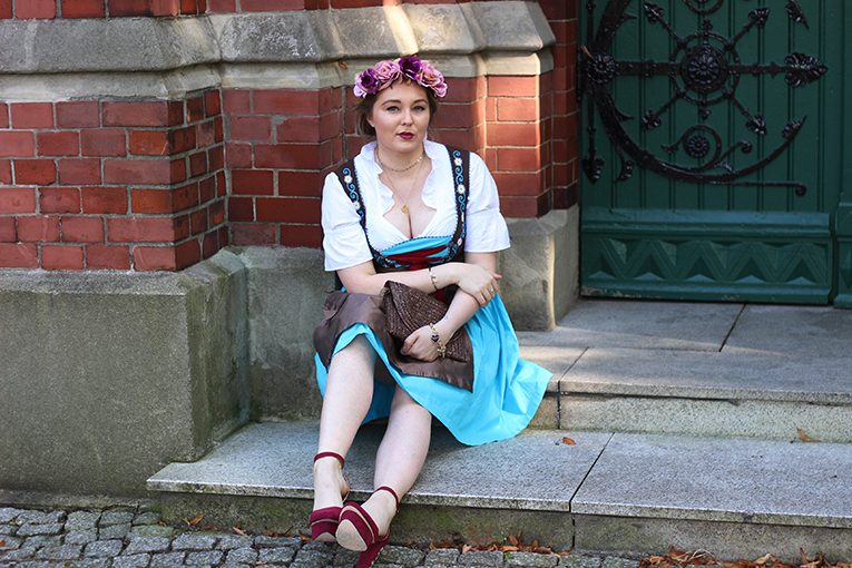 dirndl: Dirndlfest* | heels: Nelly | necklace: Milarte* | clutch: Brigitte von Boch | flower crown: Bijou Brigitte *| bracelet: SIX