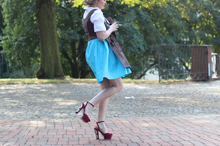 bayrischer STIL DIRNDL dirndlfest hamburg heels mit Metallapplikationen klassische Tracht modeblogger modernes dirndl oktoberfest schürze stickerei türkis wiesn wiesn schmuck