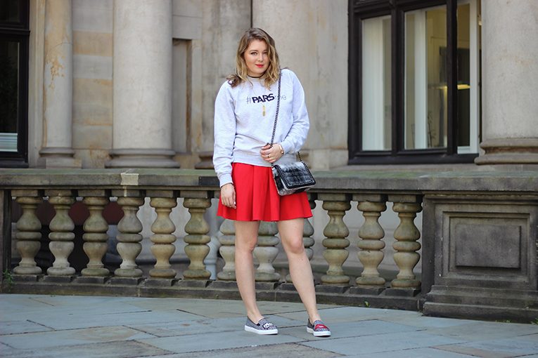 Click here to see more pictures: Red skirt & statement shoes