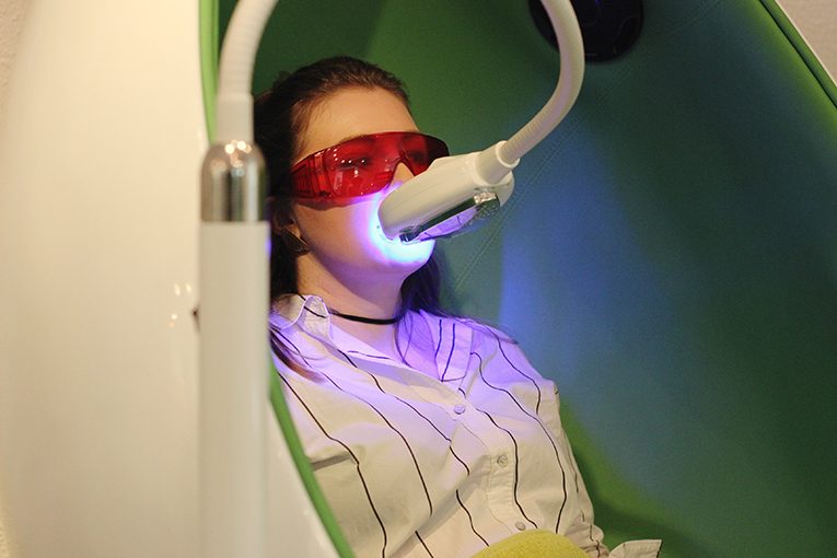 Das Gel enthält ein aktives Bleichmittel, welches durch UV Licht aktiviert wird. Es dringt in die Verfärbungen auf der Zahnoberfläche ein und löst diese auf, ohne dabei Zahnfleisch oder Zahnschmelz anzugreifen. Wichtig ist, dass Implantate, Brücken und Kronen nicht behandelt werden können, da die Aufhellung dort nicht funktioniert.